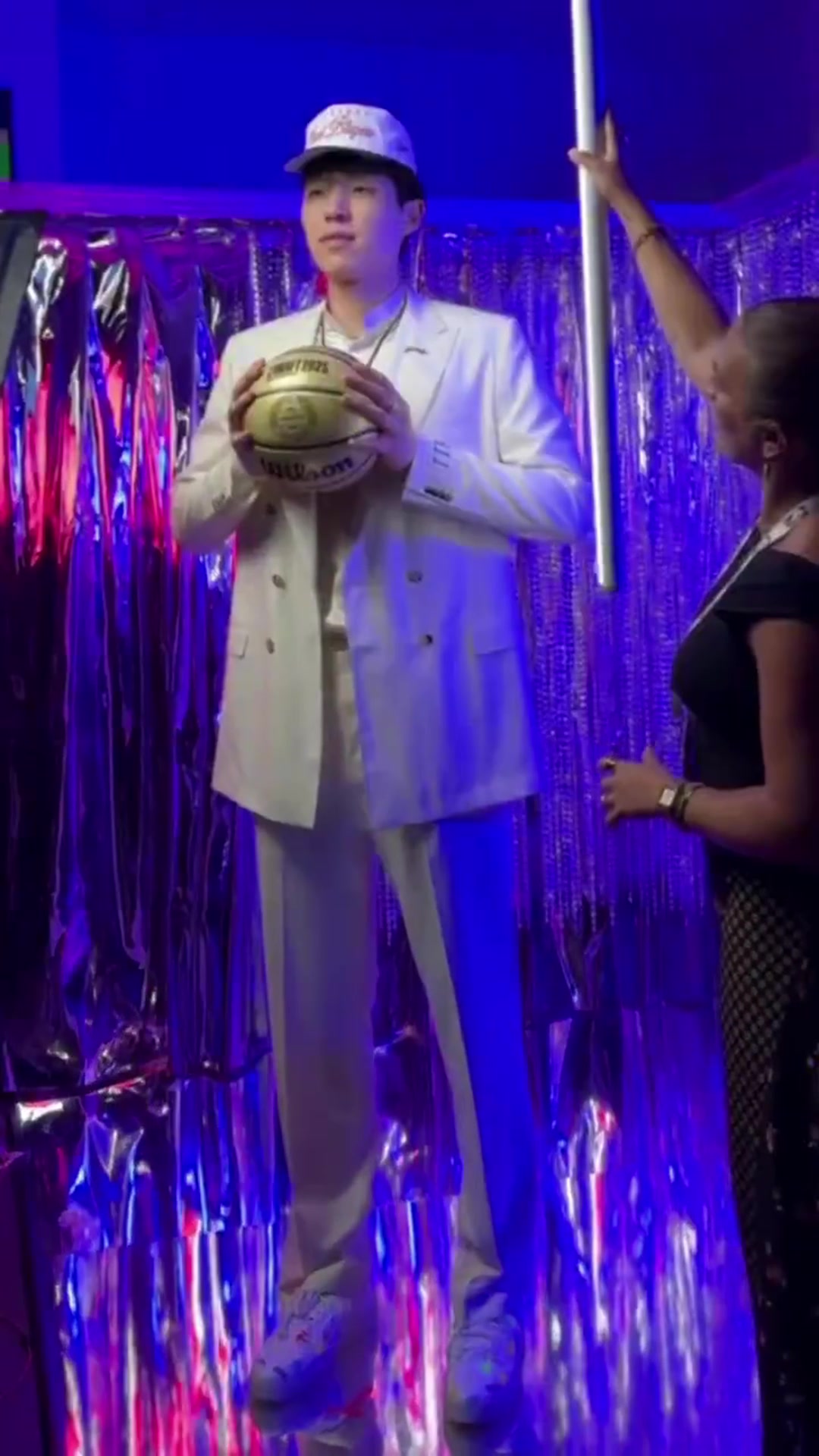 杨瀚森被选中后来到自拍机体验拍照结果太高了只拍到下半张脸