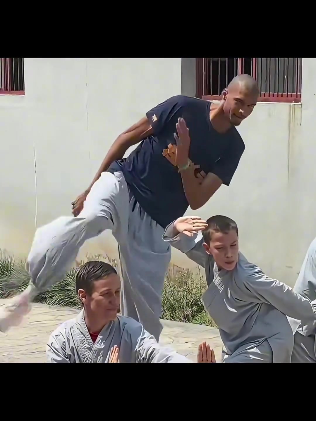 有模有样文班亚马少林寺练功使出蹬天腿