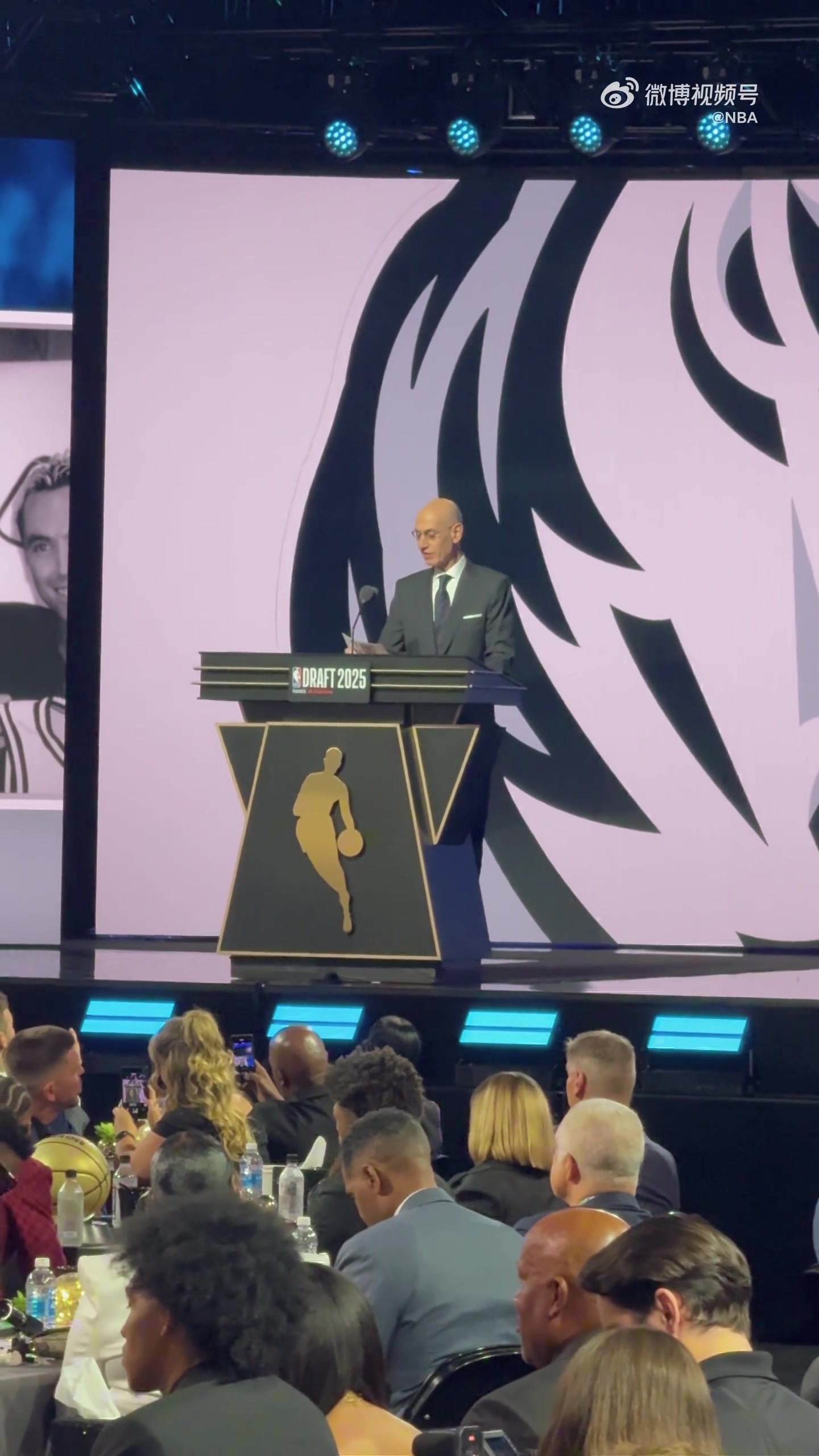 篮网首轮手握5个签一席白色西装杨瀚森坐在大会场边耐心等待