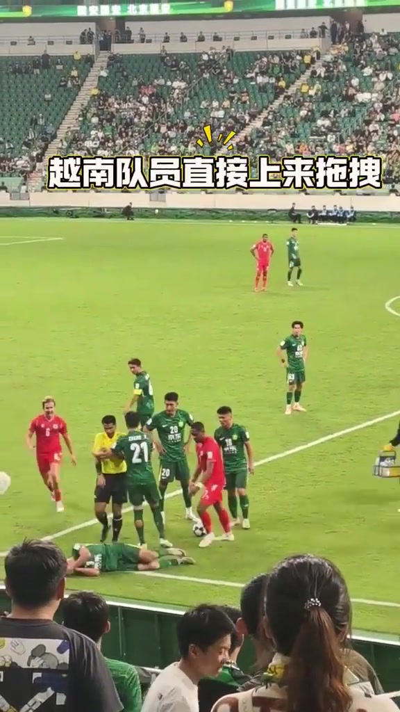 再看国安冲突起因张源提醒何宇鹏翻滚回场内越南球员暴怒