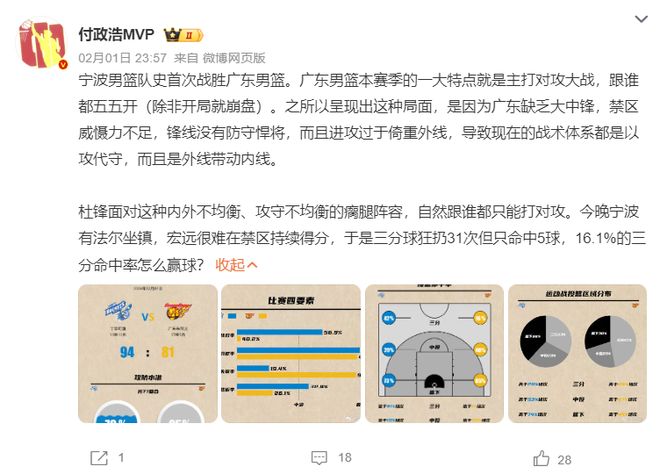 廣東男籃隊史首次輸給寧波男籃,最終還慘敗13分,此役之前廣東對陣寧波是一波八連勝。值得一提的是寧波在終結廣東交手全敗之前,剛剛終結瞭對陣遼寧的全敗紀錄,本賽季的寧波的確算得上大黑馬。