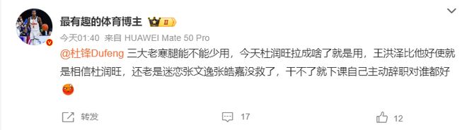 有博主也認為杜鋒的用人很有問題,三個老將實際上應該少用,杜潤旺狀態不佳還硬用,王洪澤明顯比杜潤旺好使,而且癡迷用張文逸、張皓嘉。