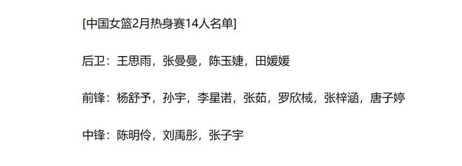 當中國女籃新名單正式發佈,王思雨、張子宇、劉禹彤等名字躍然紙上——這些朝氣蓬勃的面孔點燃瞭全國籃球迷的熱情與期待!