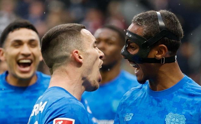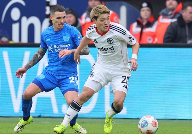 勒沃库森反客为主,在第26分钟率先取得进球。格里马尔多在送出脚后跟妙传,阿图尔禁区右侧小角度射门打进。只过了7分钟,勒沃库森再次进球!马里克-蒂尔曼在禁区线上接到科法内的回传球,直接推射近角,球又进了!门将的视线受到干扰,只能眼睁睁看着皮球入网。半场结束,勒沃库森2-0领先法兰克福。