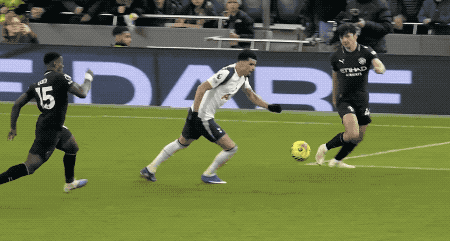 第44分钟,德拉古欣的传球被罗德里抢断,B席倒地助攻,塞梅尼奥一蹴而就,打进加盟曼城5场比赛的第4球。