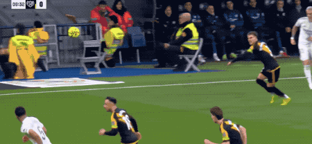 第15分钟,皇马打出快速反击,维尼修斯沿着左路进入禁区,以一敌三,兜射远角,打破僵局。