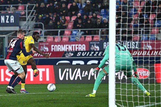 上半場第20分鐘,恩昆庫沖頂被門將撲出,拉比奧特得球回敲後奇克推射破門,AC米蘭1-0博洛尼亞;第36分鐘,AC米蘭獲得點球機會,恩昆庫主罰命中,AC米蘭2-0博洛尼亞。