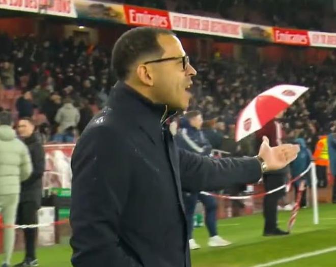 這位41歲主帥明顯怒火中燒,朝著阿森納球員或工作人員怒吼,用臟話勒令他們待在自己半場。