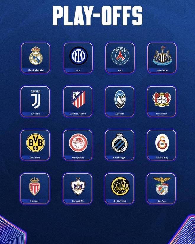 这16支球队,将通过两回合淘汰赛,决出最后8个16强名额。输掉的,直接告别欧冠。