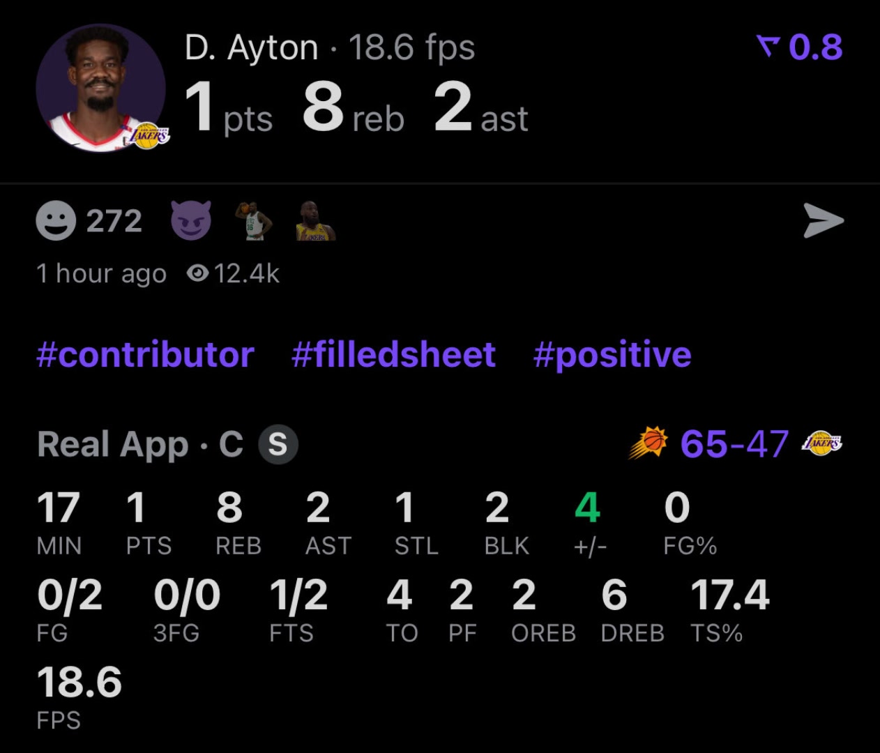 这数据令人难评啊艾顿今日2中0仅得1分8板1助2帽还有4失误