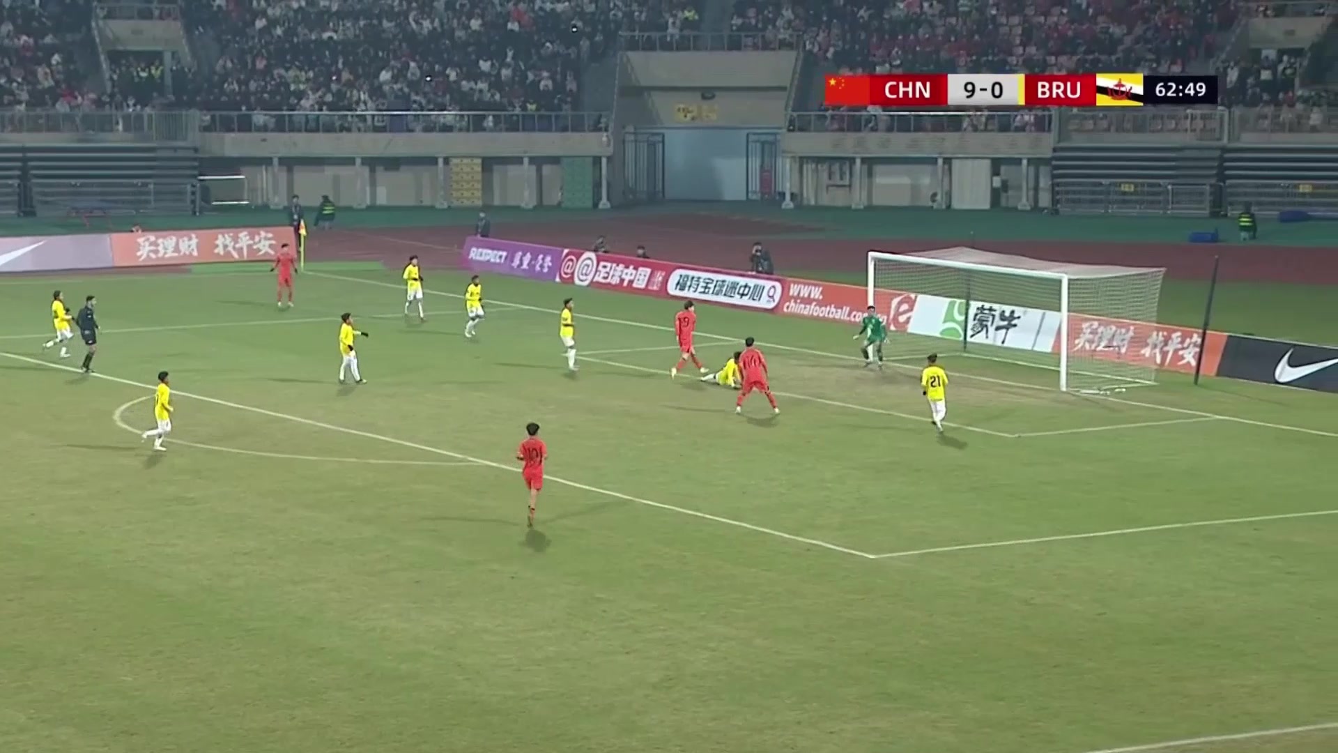 文莱后卫解围失误赵松源大四喜U16国足8-0文莱