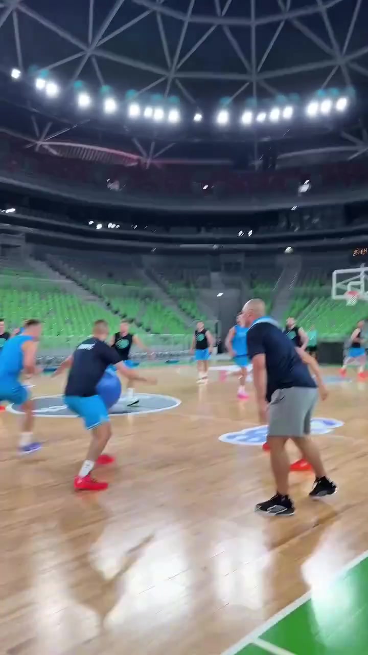 小胖子会玩东契奇带斯洛文尼亚队友用瑜伽球训练