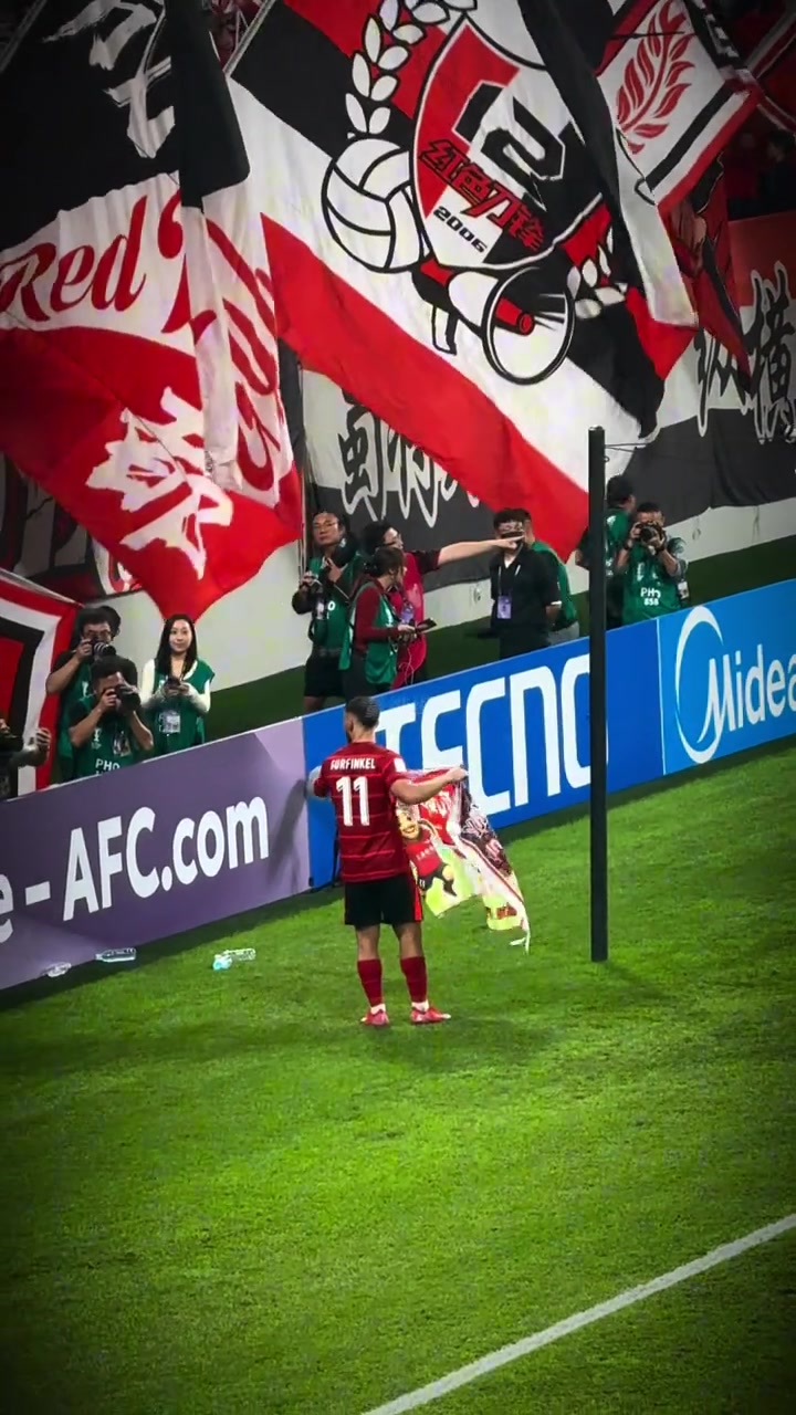 边路飞翼小钢炮丫丫赛后收到了球迷给他的应援旗
