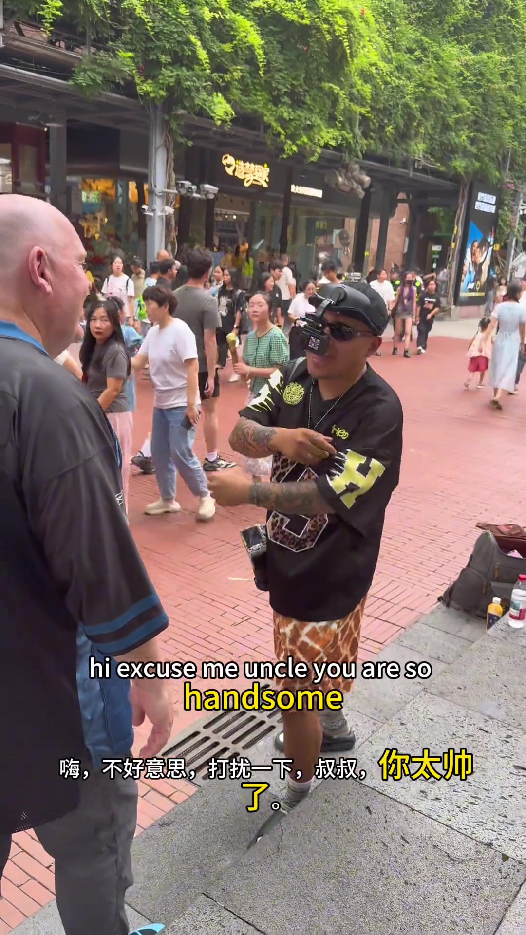 加内特的铁粉大叔居然来四川玩了还被网红逮住并秀一把街拍