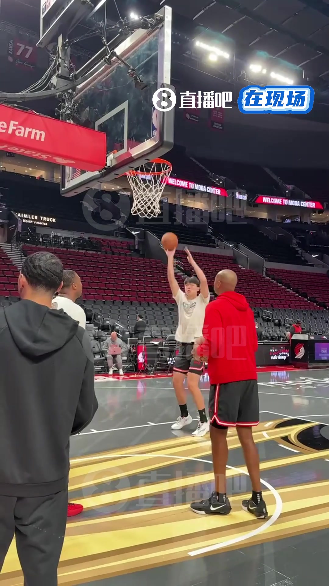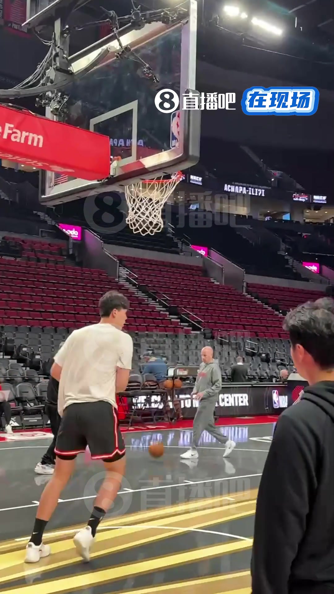 小吧现场直击杨瀚森赛前热身练顺下暴扣今天有机会登场不