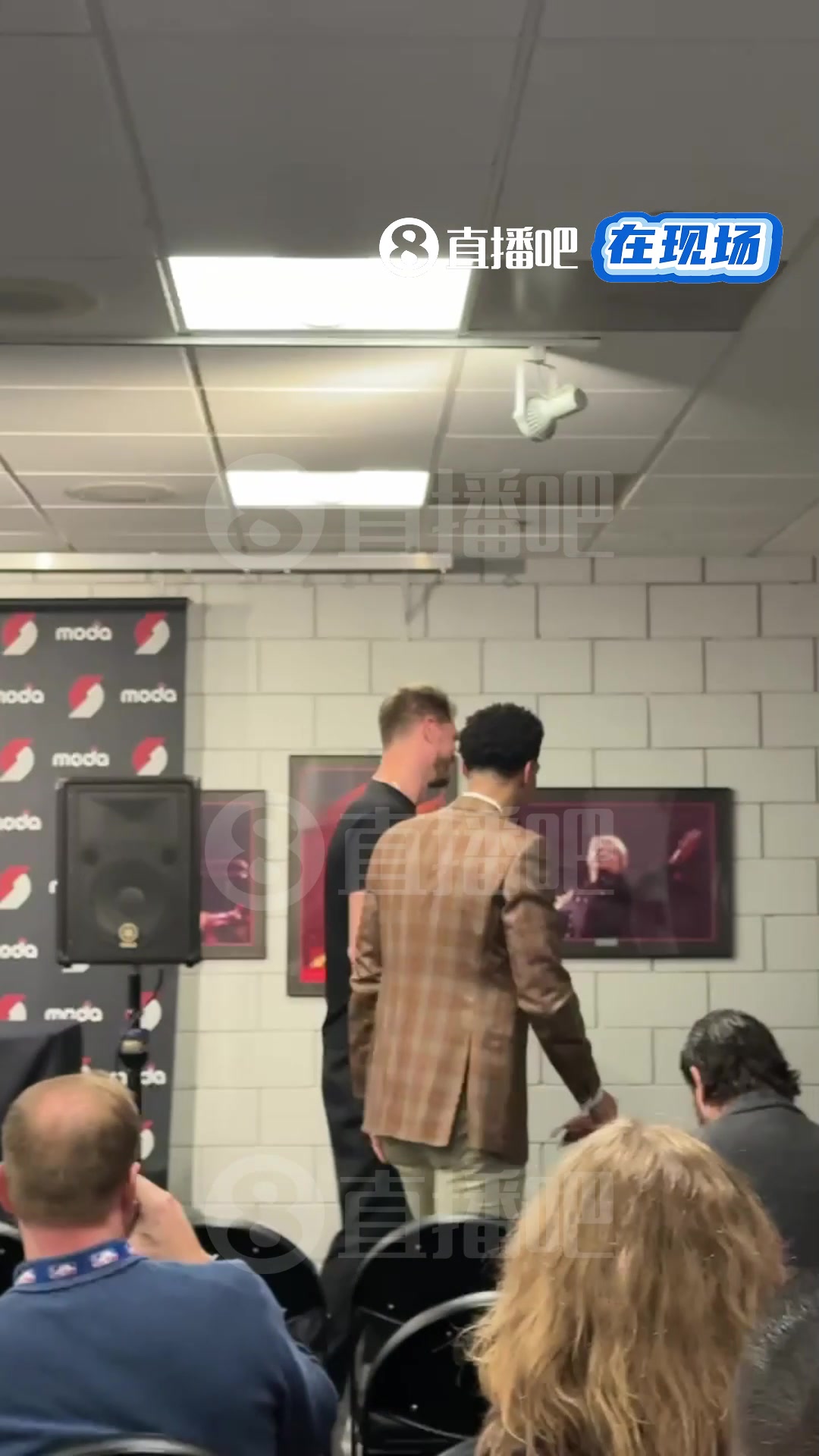 小吧直击开拓者赛前发布会斯普利特与丹尼格林老友相见抱一抱