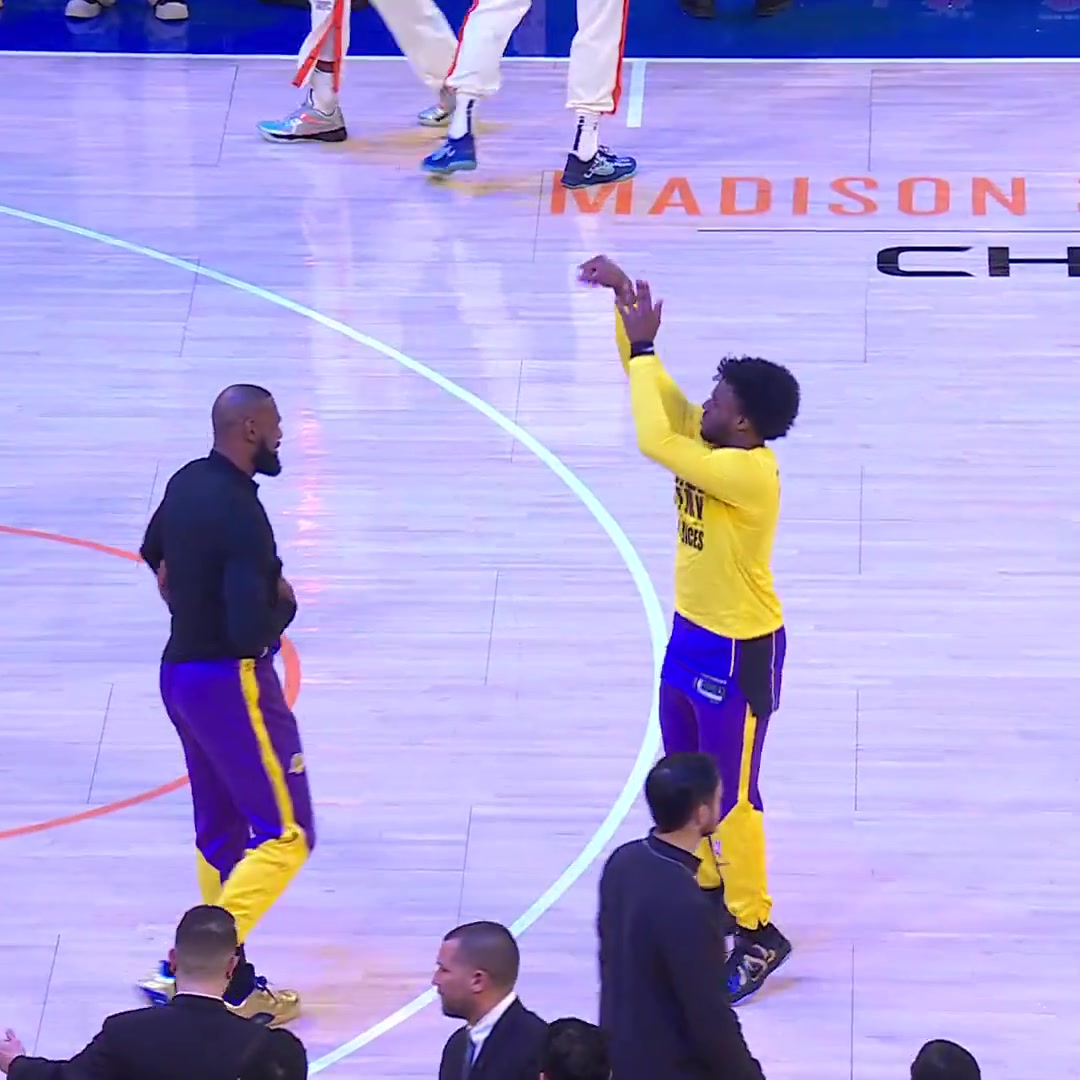 布朗尼热身投篮詹姆斯走过来你妈叫你了快去