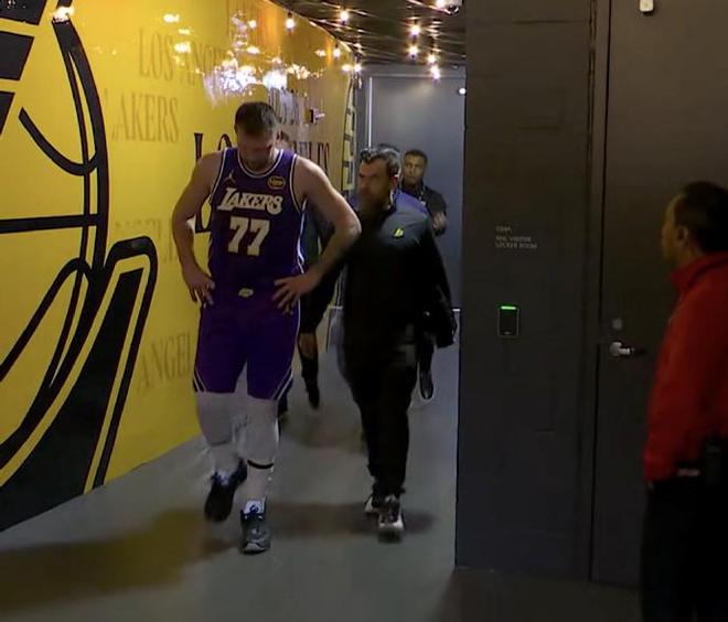 湖人官宣:東契奇左腿筋酸痛退賽 離場時怒踢廣告牌宣泄情緒
