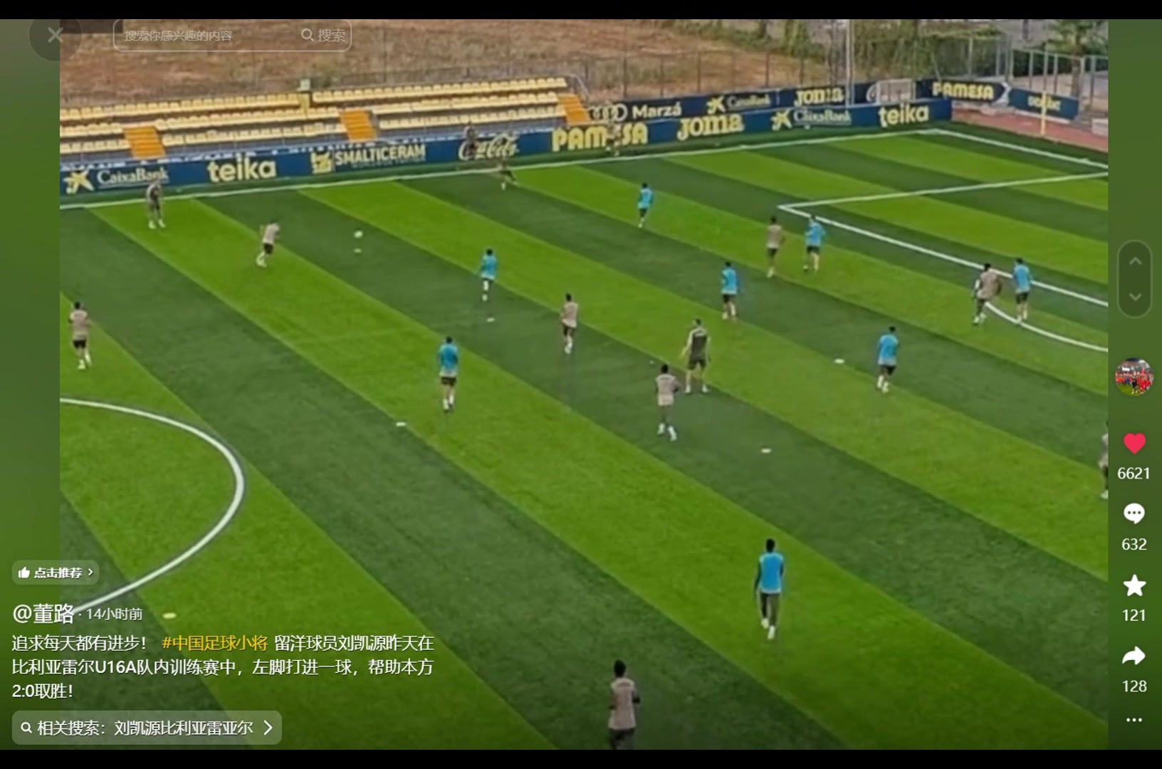 脚头很硬董路刘凯源在黄潜U16A队内训练赛中左脚打进一球