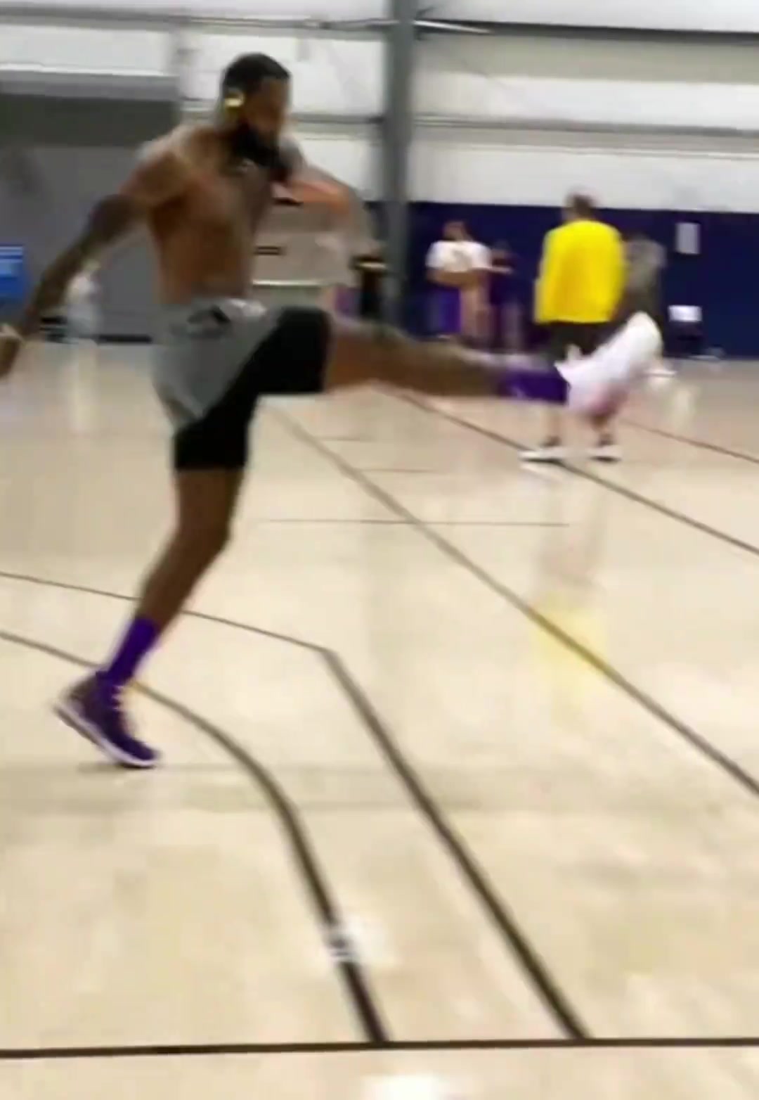 老詹在陪练无对抗的情况下脱手气的直接踢飞篮球