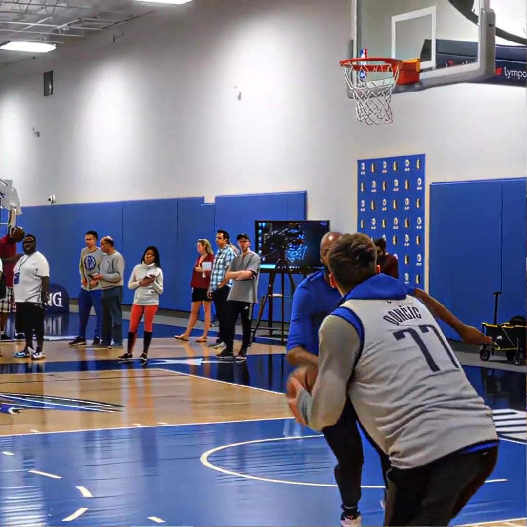 东契奇和八村桑比划一下指尖转球