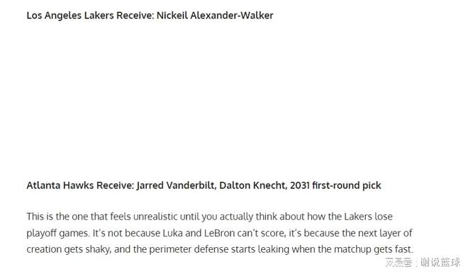 美媒支招湖人交易20+4雙能衛,兩替補或成籌碼,還送31年首輪簽?
