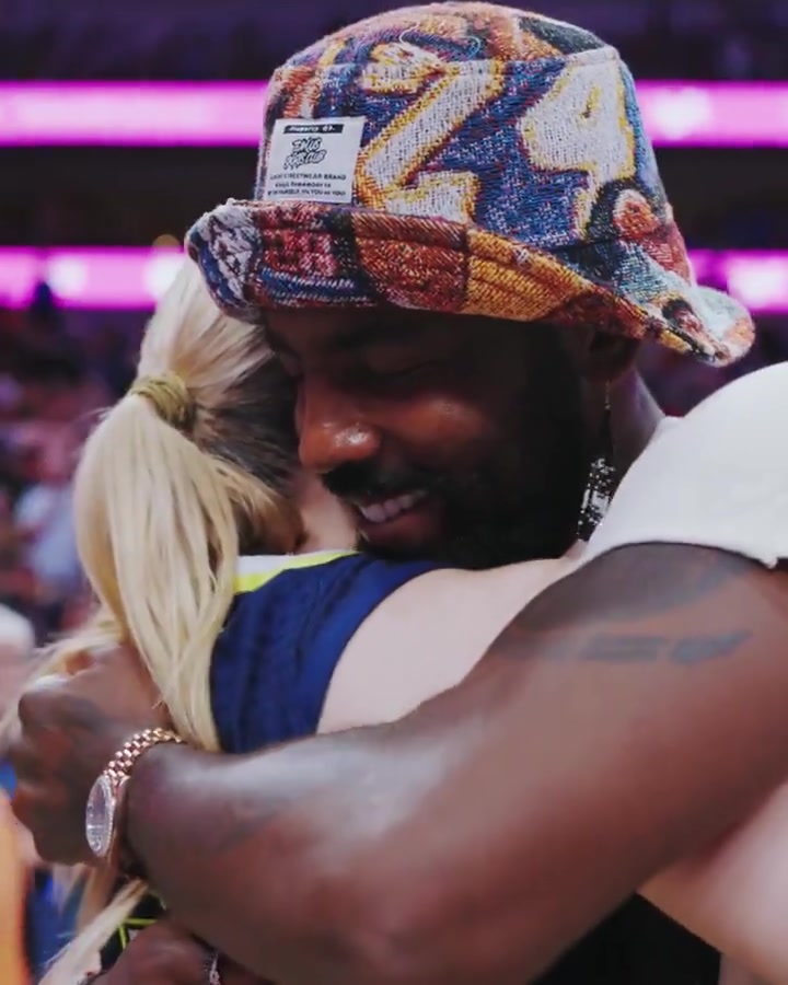 佩奇如愿以偿啦欧文来看她比赛送上抱抱满脸的宠溺