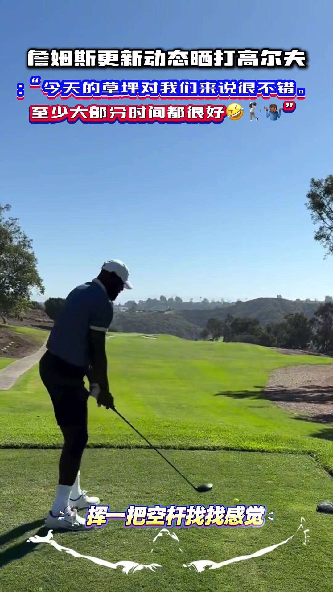 怪不得没去东契奇续约发布会老詹雨中打高尔夫今天草坪很不错