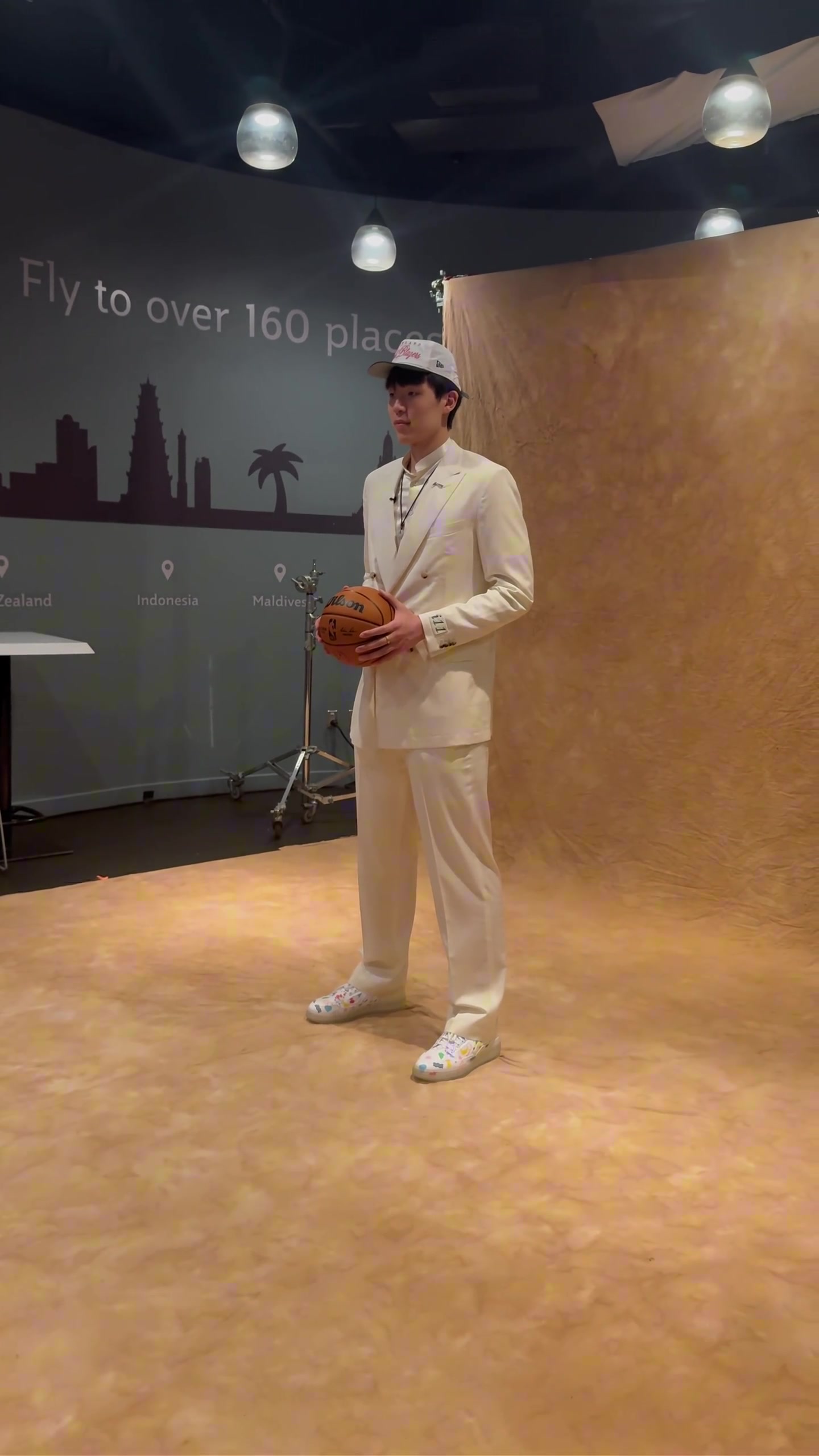 定妆照look杨瀚森一身白色西装帅气亮相定妆照拍摄现场