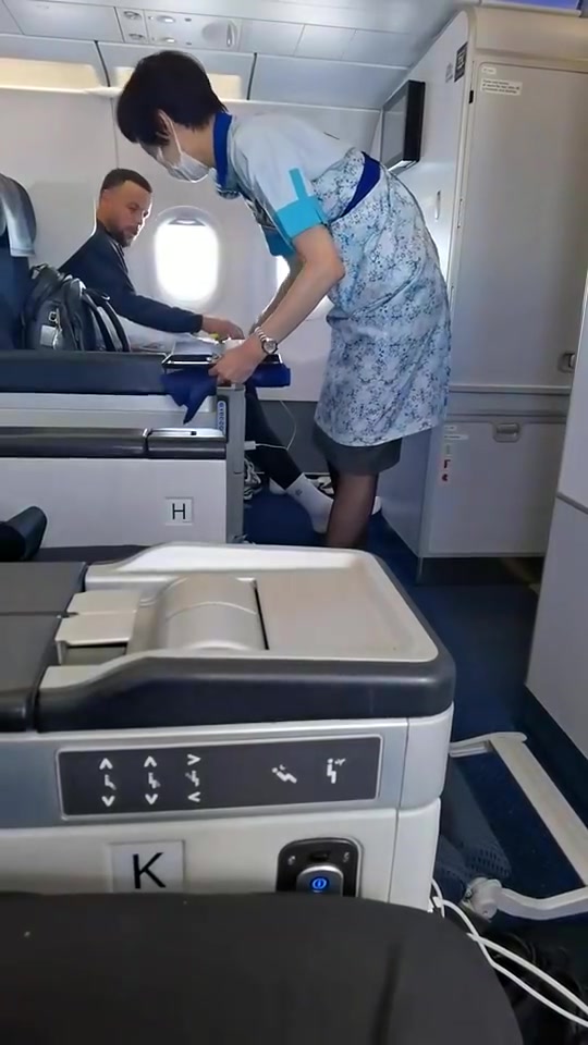 网友此前坐飞机偶遇库里这是给书包买了个座位