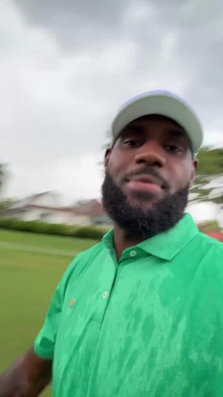 这么上头的吗詹姆斯在雨中打高尔夫衣服都湿透了