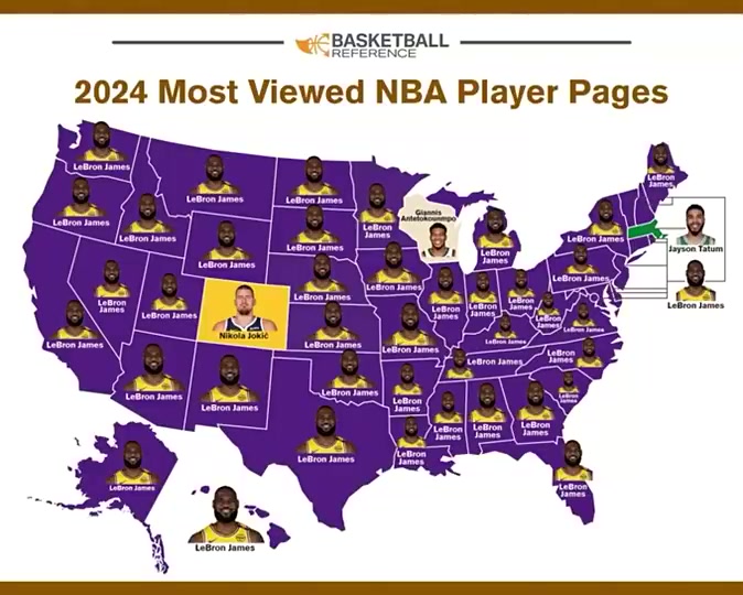 24年各州球员资料浏览次数最多球员全美只有三个州不是詹姆斯